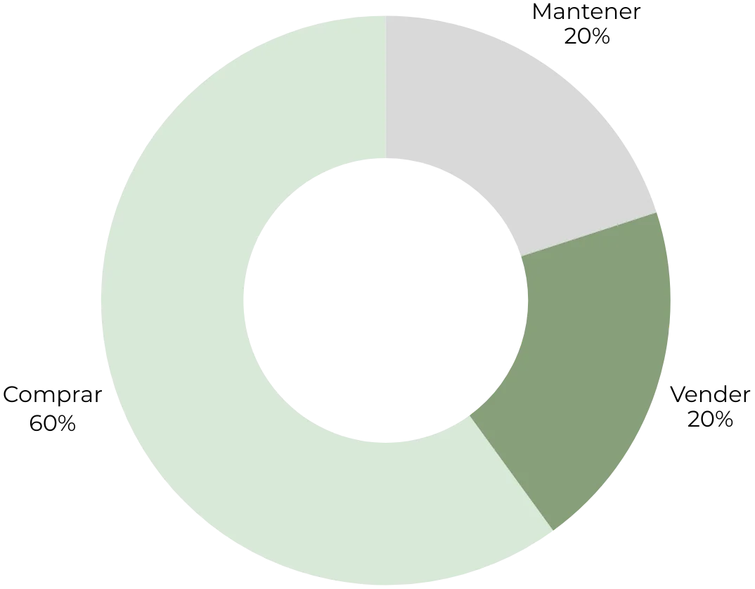 Listado de los doce analistas de renta variable que cubren actualmente la compañía junto con sus últimas recomendaciones y precios objetivos.