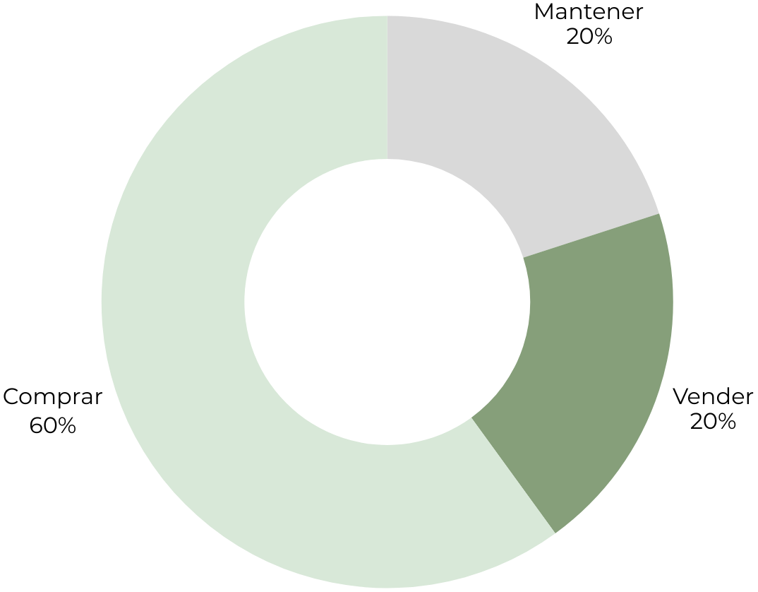 Listado de los doce analistas de renta variable que cubren actualmente la compañía junto con sus últimas recomendaciones y precios objetivos.