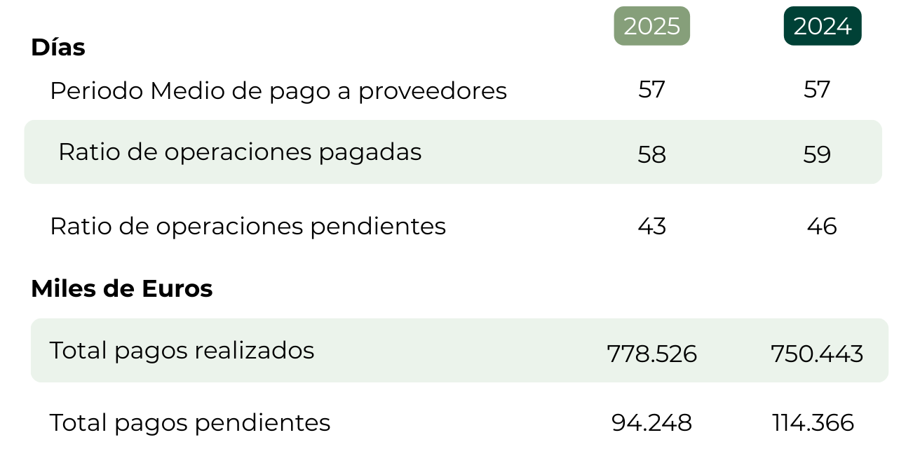La información sobre el periodo medio de pago se ha elaborado de acuerdo a la Ley 15/2010, por la que se establecen medidas de lucha contra la morosidad de las operaciones comerciales, las modificaciones establecidas en la Ley 18/2022, de 28 de septiembre, de creación y crecimiento de empresas y la Disposición final segunda de la Ley 31/2014, de 3 de diciembre, que ha sido preparada aplicando la Resolución del Instituto de Contabilidad y Auditoría de Cuentas de fecha 29 de enero de 2016.